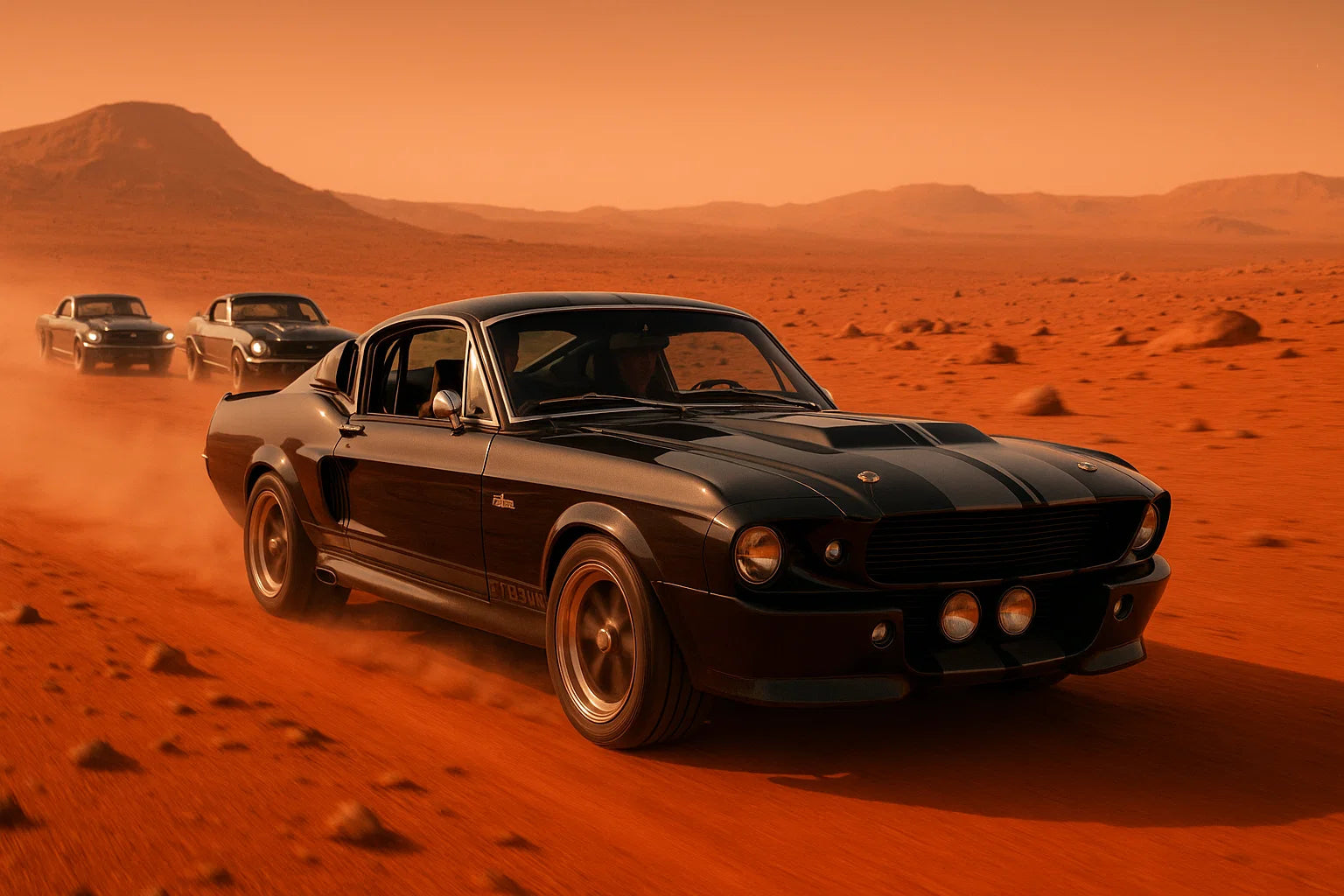 Canvas by Integer presents Mustang on Mars: A legendary muscle car tears across the red sands of Mars, leaving trails of dust under an alien sky. This canvas captures the thrill of speed and the dream of exploration, blending raw horsepower with cosmic wonder. Perfect for car enthusiasts and sci-fi lovers alike.